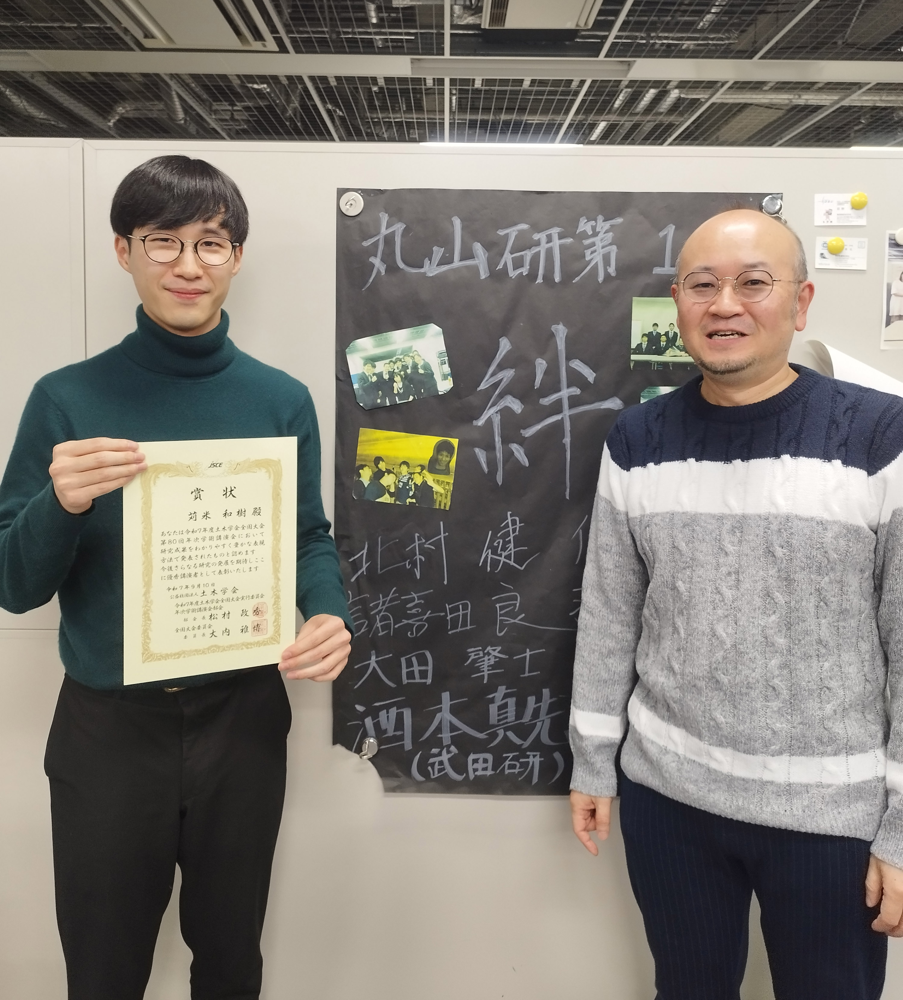 令和7年度土木学会全国大会・第80回年次学術講演会にて、丸山研究室博士後期課程2年生の苅米和樹君が年次学術講演会優秀講演者として表彰されました。